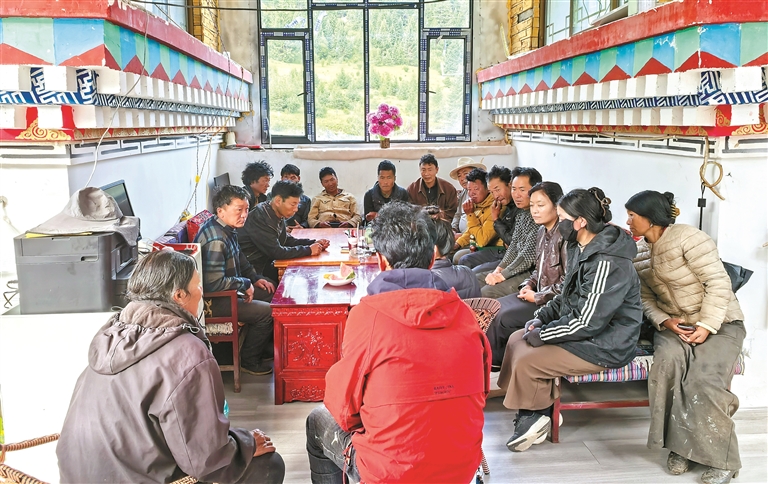 图为洛隆县马利镇布许村的“庭院议事屋”内,村干部与村民围坐商讨发展大计。本网记者 贡秋曲措 摄