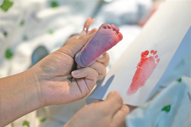 1月1日,自治区人民医院妇产科助产医生次拉为新生儿印脚印。新华社记者 旦增尼玛曲珠 摄