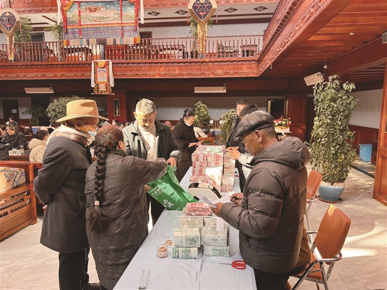 2025年,合作社在扎细社区“两委”引领下,依托茶园、林卡等特色产业资源,持续深耕经营、提质增效,实现集体经济稳健增长。按照该合作社章程及收益分配方案,经规范核算、民主审议与公示程序,本次共计发放分红金额1124.4万元,让群众切实感受到发展红利。