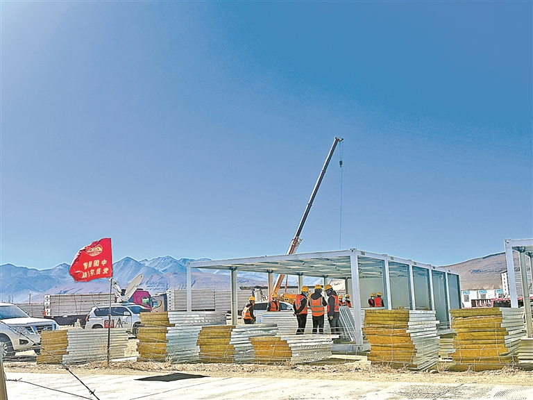 图为2025年1月10日,定日县受灾最严重的长所乡多个安置点正在组织力量快速搭建活动板房。记者 次旦央吉 摄