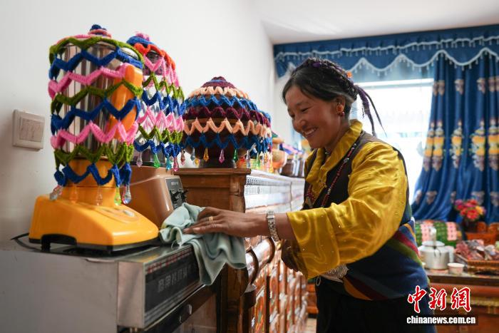 村民多布杰在森嘎村经营着一家甜茶馆。从安置板房搬进牢固的新居后,生活重回正轨。他在自家院中建起阳光棚开门迎客,每日顾客络绎不绝。“新房宽敞,通了自来水,装了太阳能热水器,房子都是钢筋水泥建的,住着不害怕了。”谈及那场灾难,他轻声说:“只是偶尔想起离开的长辈和发小,心里还是会难过。”