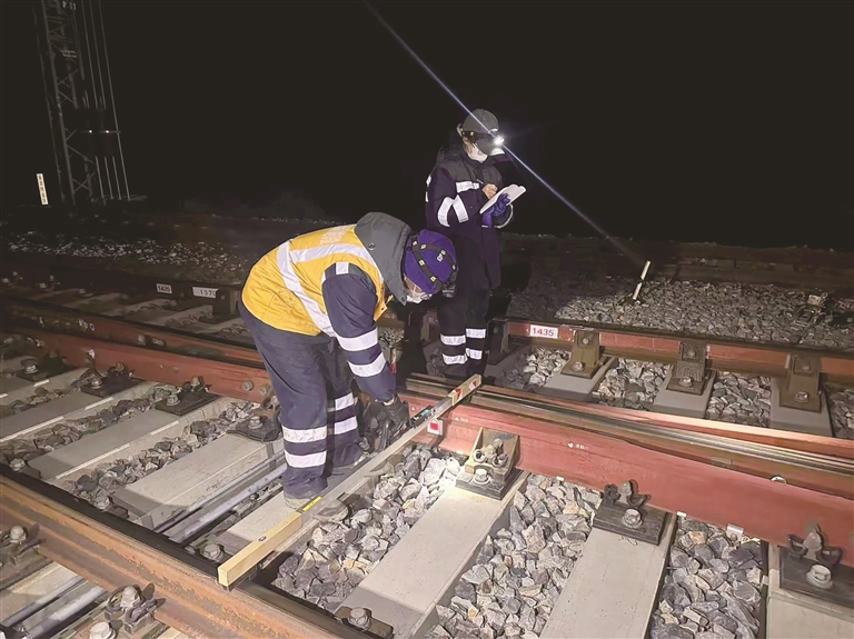 如今,嘎玛伦珠与白玛措姆早已褪去青涩,快速融入了工区的工作节奏。他们的日常,是拿着轨距尺一遍又一遍精准测量,握着捣固机一次又一次夯实道床。从晨光微熹到暮色四合,他们用脚步丈量钢轨长度,用汗水守护高原铁路安全,诠释“00后”的责任与担当。