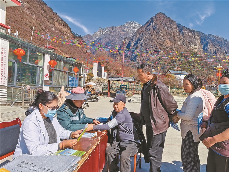 图为医护人员为庄堆村广大群众进行义诊体检与健康宣传。记者 武沛涛 摄