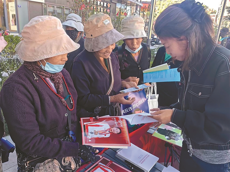 图为山南市妇联工作人员为广大妇女群众讲解相关法律法规。记者 巴桑旺姆 摄