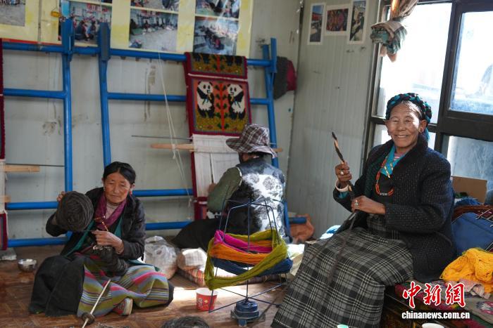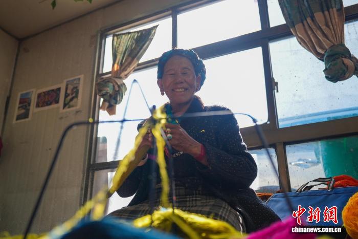 图为合作社员工旦卓正在编织邦典(藏式围裙)。贡确 摄