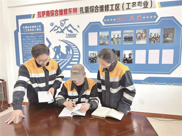 在拉萨基础设施段拉萨南综合维修车间扎囊综合维修工区,有两位“入路”不久的“00后”:2001年出生的嘎玛伦珠和2002年出生的白玛措姆。2025年秋,两人分别走出西南交大和北京交大校园,回到家乡,开始用青春之力守护家乡天路。