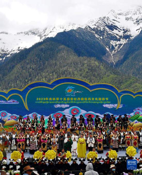 5月28日拍摄的米林市第十五届黄牡丹藏医药文化旅游节开幕式现场。新华社记者 刘文博 摄