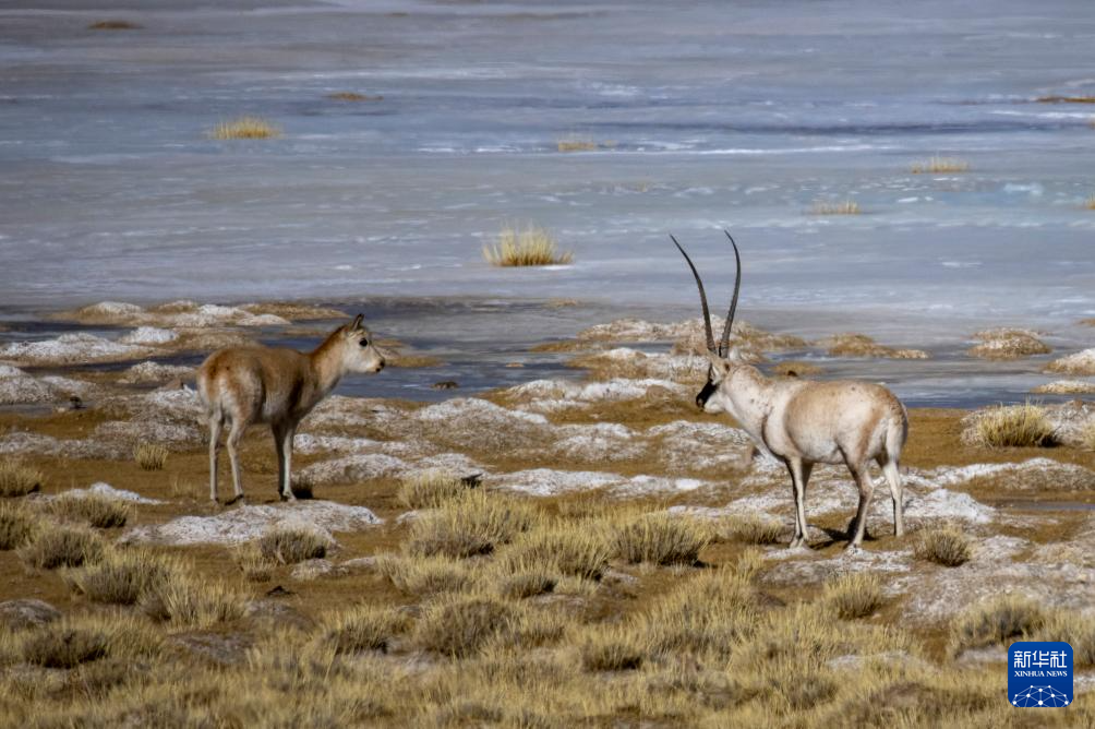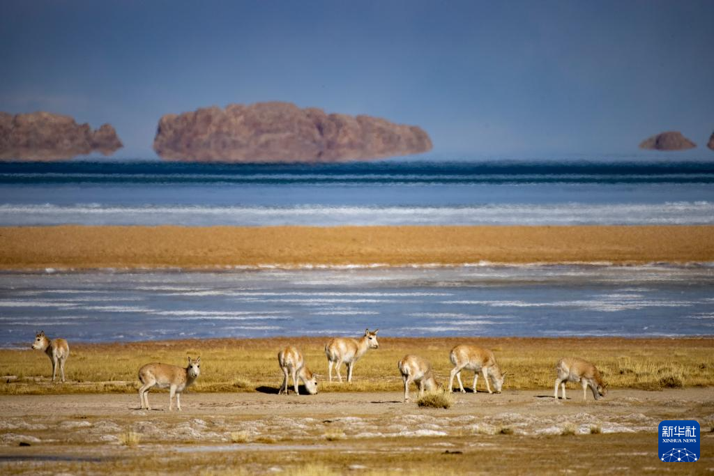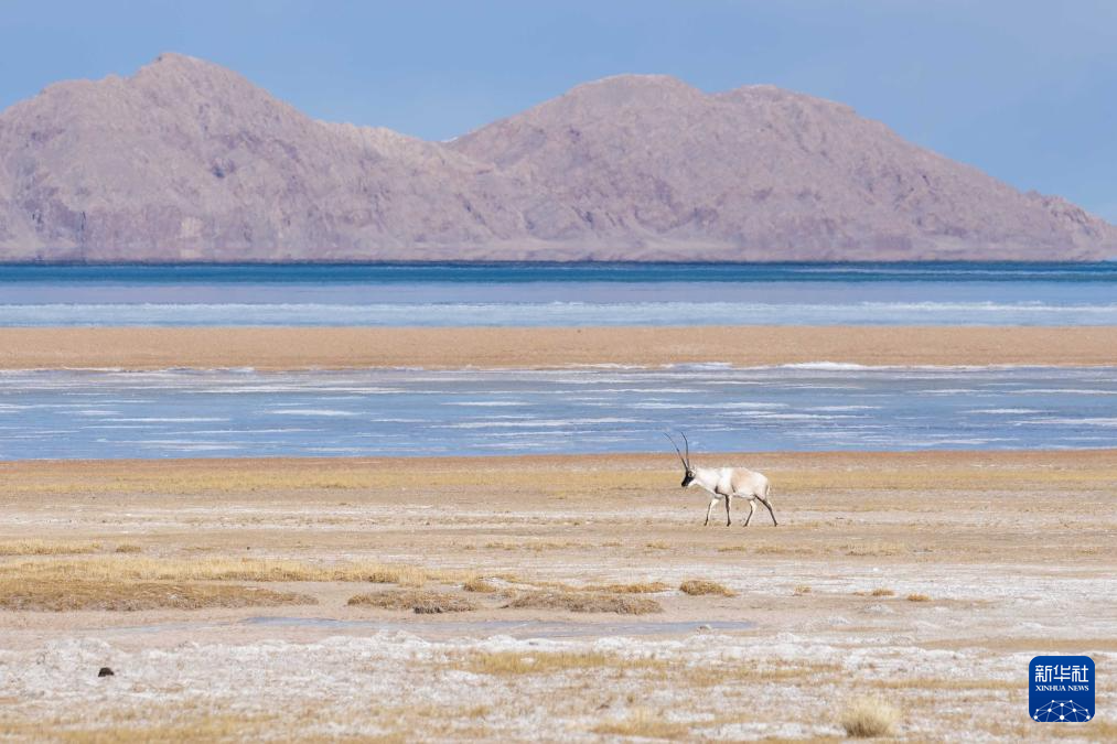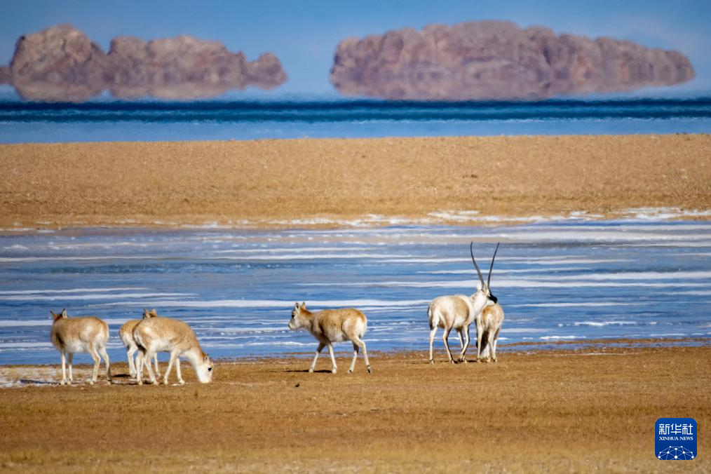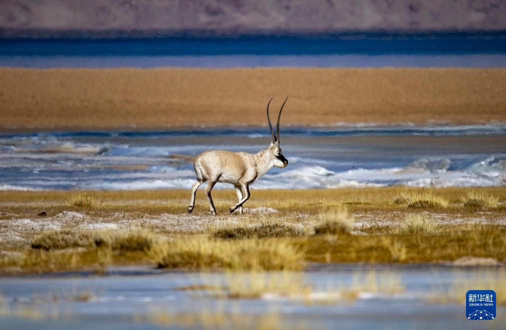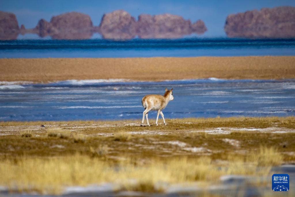 这是在色林错湖畔拍摄到的藏羚羊(1月5日摄)。新华社记者 旦增尼玛曲珠 摄