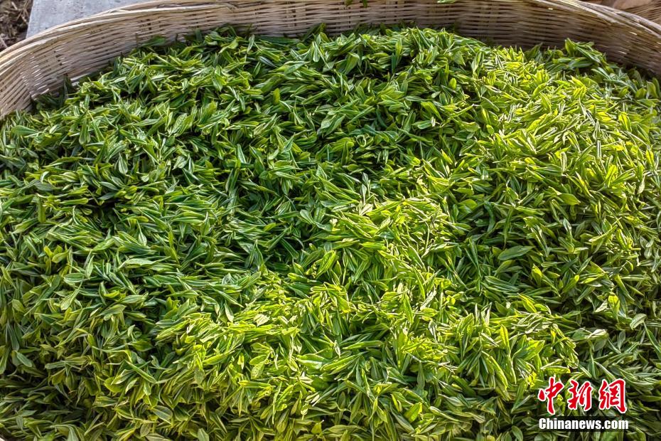 图为3月24日,西藏墨脱县达木珞巴民族乡农牧民采摘的春茶茶青。布姆曲珍 摄