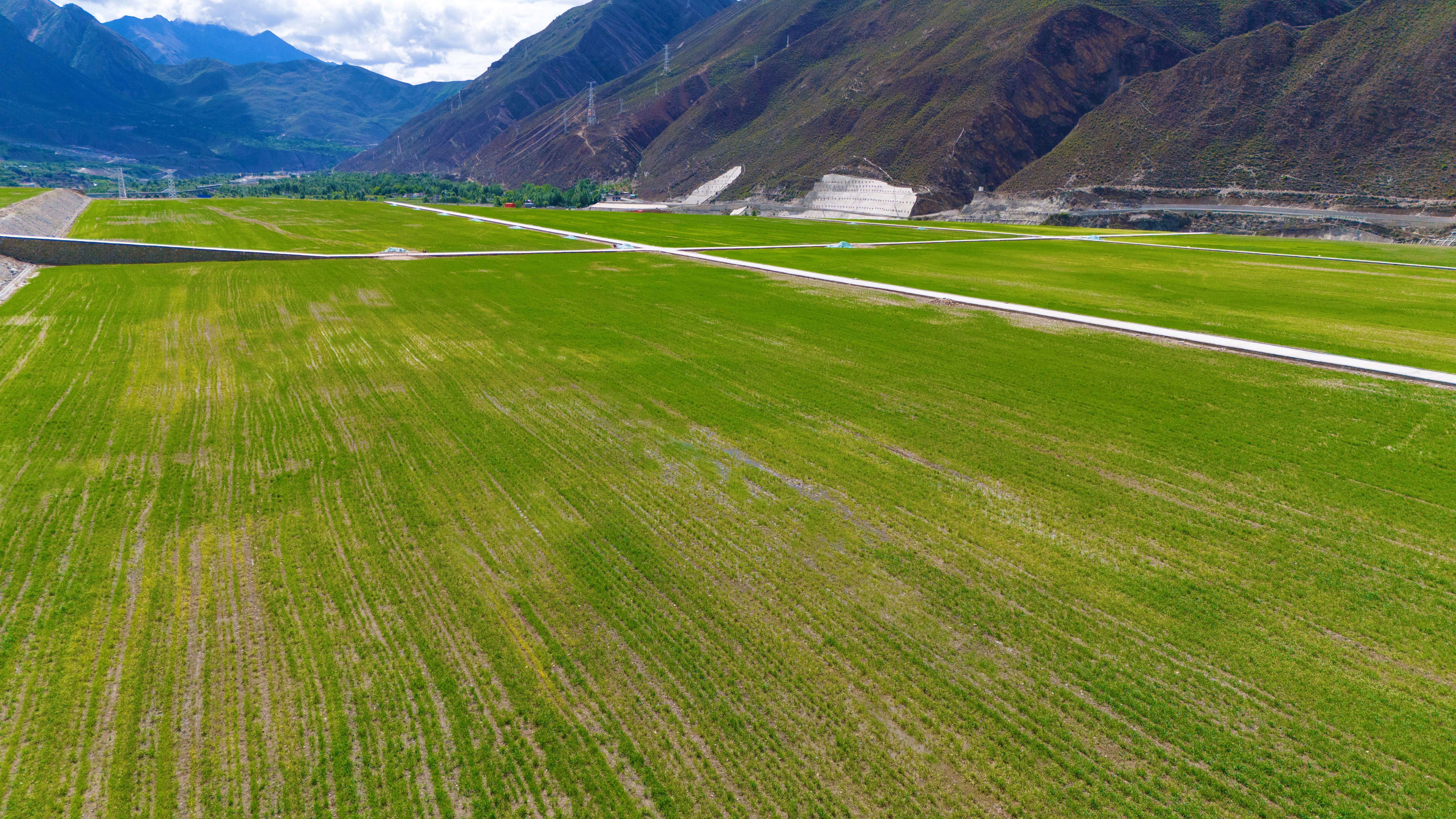 据悉,复垦地在雅江水电站建设渣场及荒坡地基础上,改良建设1168亩高标准自动化灌溉农田,总投资1亿元,建设9大区高标准农田,涉及铺土约50万立方米、灌溉渠系约3万米、田间道路约1.3万米、边坡框格支护约12万平方米、灌溉饮水管路约1.1万米。于2024年4月10日陆续将已建成农田提供给当地政府进行“藏青3000”号青稞试种,5月10日实现1000.48亩农田出苗。