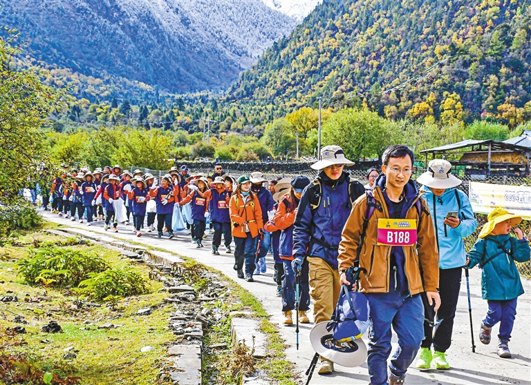 图为来自五湖四海的徒步爱好者在巴松错景区徒步。记者 刘枫 摄
