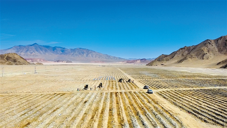 为了抓住春季种植的黄金时期,10台挖掘机组成的“机械主力军”昼夜奋战,每台机械配备3名技术小工,形成“机械开道、人工精种”的高效协作模式,一台机械日均能完成2000多株班公柳的扦插任务。