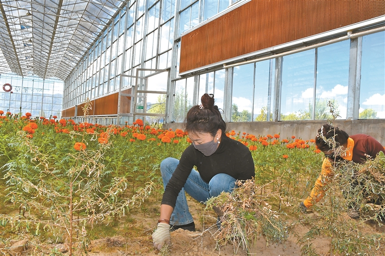 图为在家门口实现就业的群众在产业基地进行田间管理。记者 丹增平措 摄