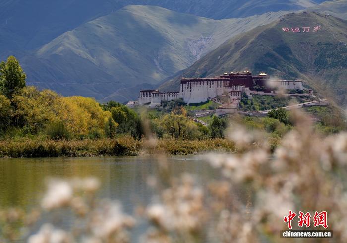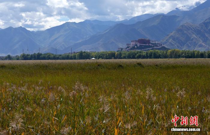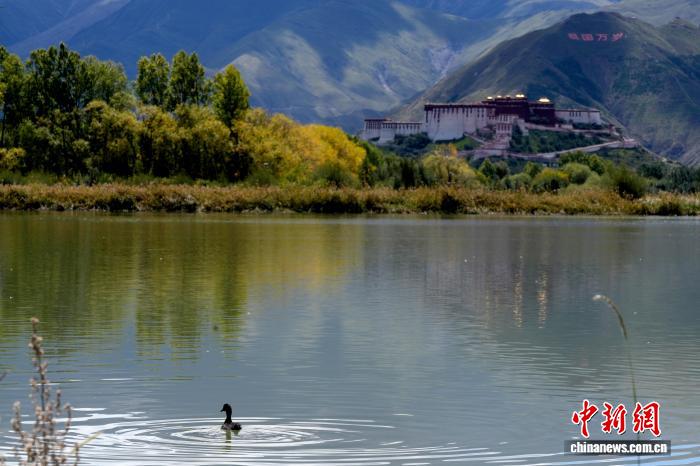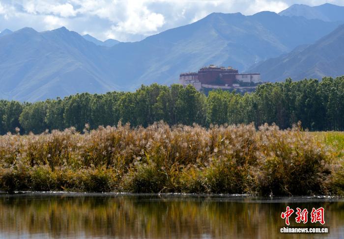 9月4日,初秋时节的西藏拉萨市拉鲁湿地国家级自然保护区秋意渐浓、景色如画。蓝天白云下,草木黄绿、水鸟嬉戏,与远处的城市建筑共同构成一幅美丽的生态画卷。中新社记者 李林 摄