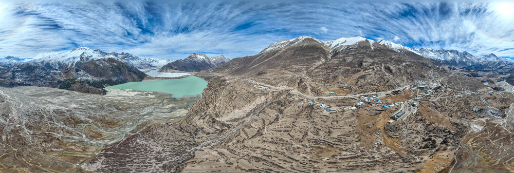 冬日时节,位于西藏昌都市八宿县境内的来古冰川与蓝天、湖泊相互映衬,景色壮美。