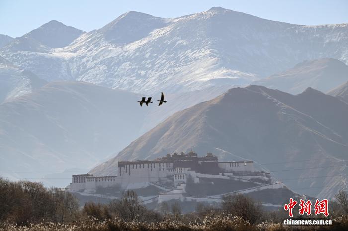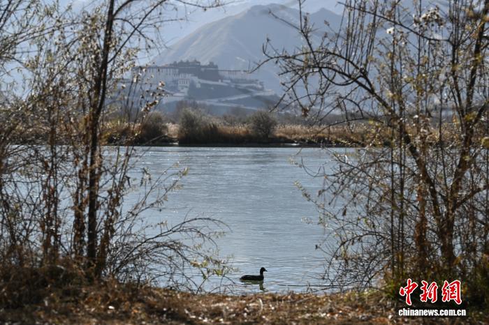 2025年12月9日,世界海拔最高的城市内陆天然湿地——拉萨拉鲁湿地国家级自然保护区尽显冬日盛景。这片总面积12.2平方公里的“拉萨之肺”,初冬时节芦苇泛金,赤麻鸭、斑头雁等候鸟在此嬉戏觅食。远处布达拉宫巍然矗立,周边雪山皑皑,自然生态与人文景观交相辉映,构成一幅兼具壮阔与灵动的高原画卷,彰显着拉萨人与自然和谐共生的生态之美。图为拉萨市民在拉鲁湿地晨练。中新社记者 贡嘎来松 摄