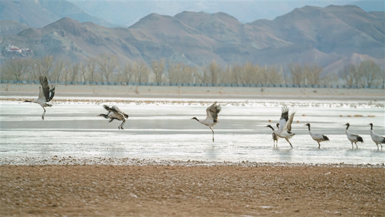 藏族歌谣唱道:“洁白的仙鹤啊,请把翅膀借我!不到远处飞去,只到理塘就回。”黑颈鹤是藏地传说中的吉祥信使,是湿地生态的“活指标”,更是年年赴约的“高原归客”。临近春节和藏历新年,高原因这群精灵更添生机。(记者 欧珠次仁 实习生 胡成飞)