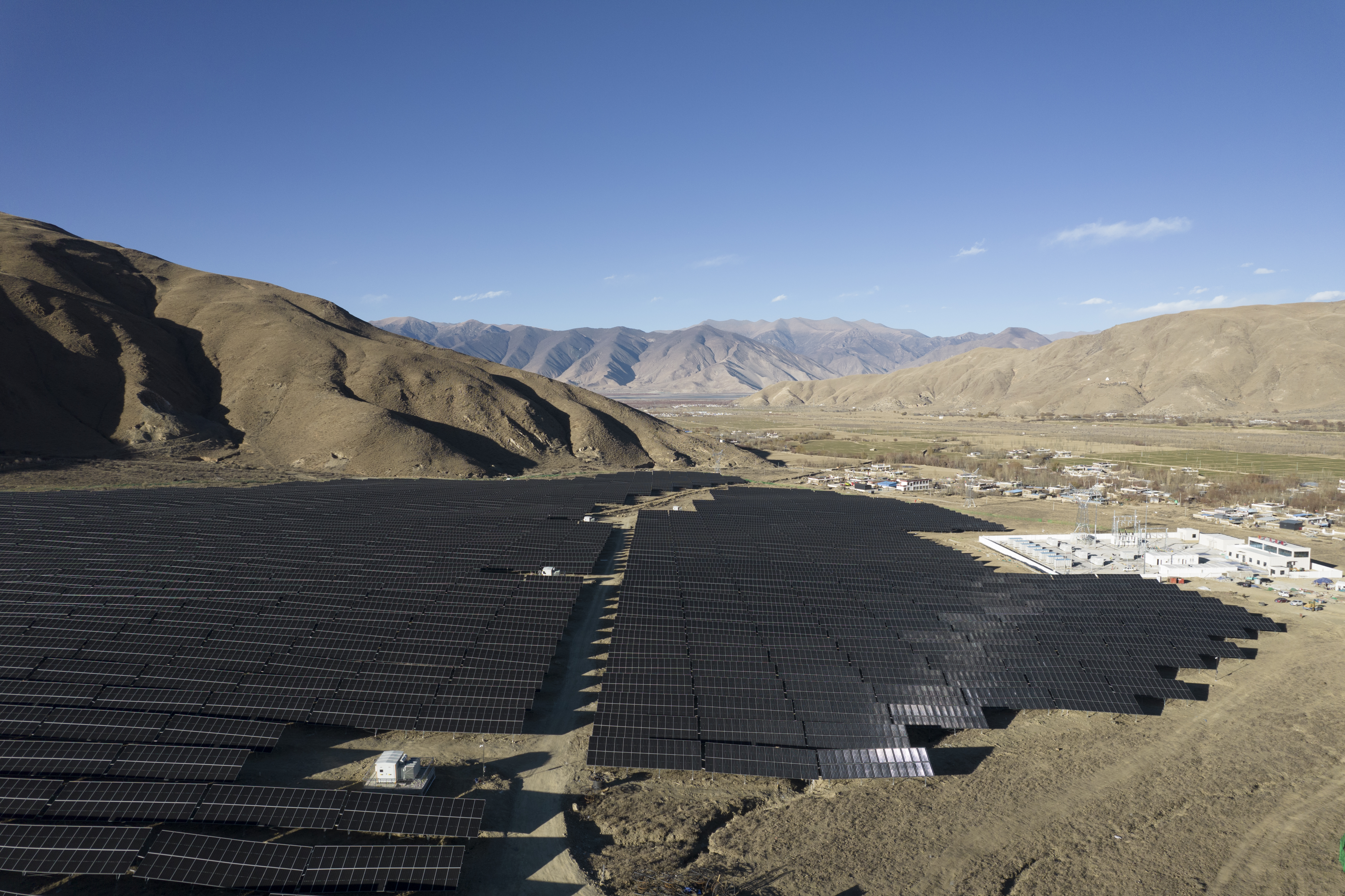 图为山南市扎囊县罗堆村50MW光伏治沙示范性项目。龙安梁 杨帆 记者 武沛涛 摄