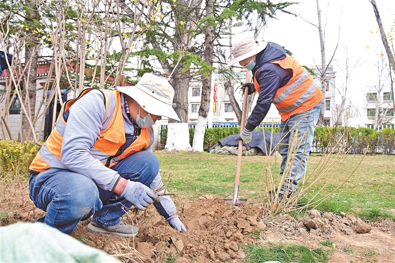 连日来,拉萨市宗角禄康公园内一派繁忙景象,园林工人抢抓春季绿化黄金时节,有序开展苗木栽植工作,为公园增添盎然生机。