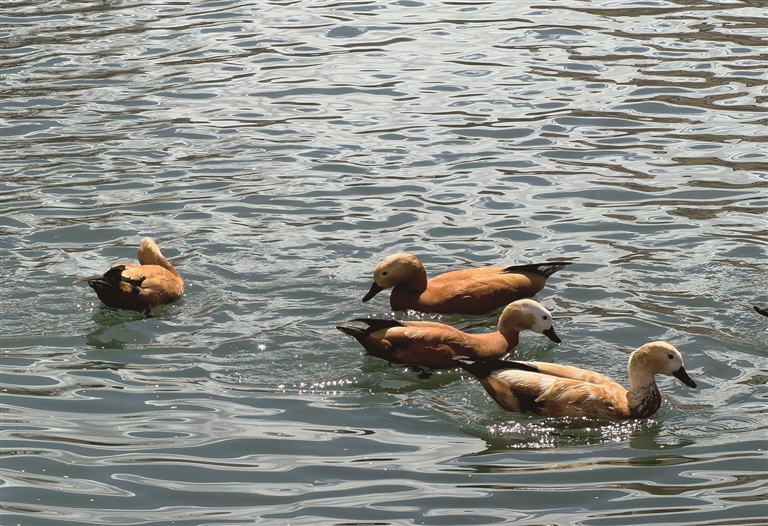 公园的湖面是春日灵动的核心。湖水碧绿澄澈,波光粼粼,清晰倒映着布达拉宫的雄姿与岸边的花树,构成“湖映宫、花绕湖”的绝美画面。成群的赤麻鸭结伴游弋;水鸟时而振翅掠过水面,时而停驻在湖心……为湖面增添了勃勃生机。游人们或乘船缓行,或凭栏欣赏湖光山色,或伸手与水鸟互动,尽显春日游玩的惬意。