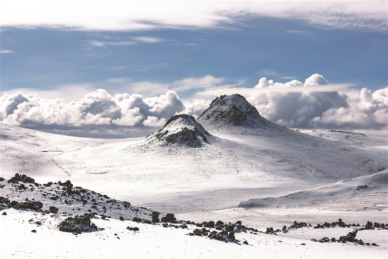 “巴毛穷宗”位于西藏那曲市双湖县,地处羌塘无人区深处,平均海拔约5000米,没有人工道路可以抵达。这里分布着一片死火山遗迹,拥有直径约300米的漏斗形火山口及大量玄武岩风蚀柱,形成了独特的“石林”景观。近日,记者跟随羌塘国家级自然保护区那曲地区管理局专业管护队进入这一地区进行生态巡护,用镜头探秘这片神奇的土地。