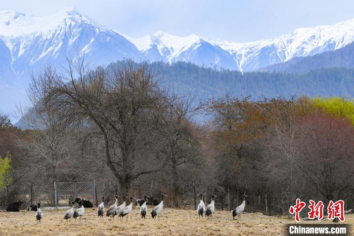 近日,记者在西藏自治区拉萨市林周县境内拍摄到黑颈鹤、白唇鹿、藏雪鸡、藏马鸡等野生动物。