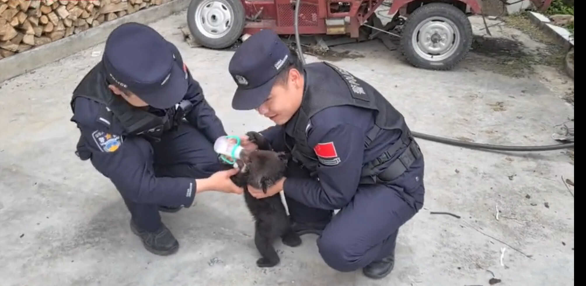 日前,西藏日喀则移民管理警察在聂拉木县樟木镇立新山巡逻途中发现一只落单幼熊。经林草部门确认,该幼熊为国家二级保护动物黑熊喜马拉雅亚种,现已移交聂拉木县林草局。