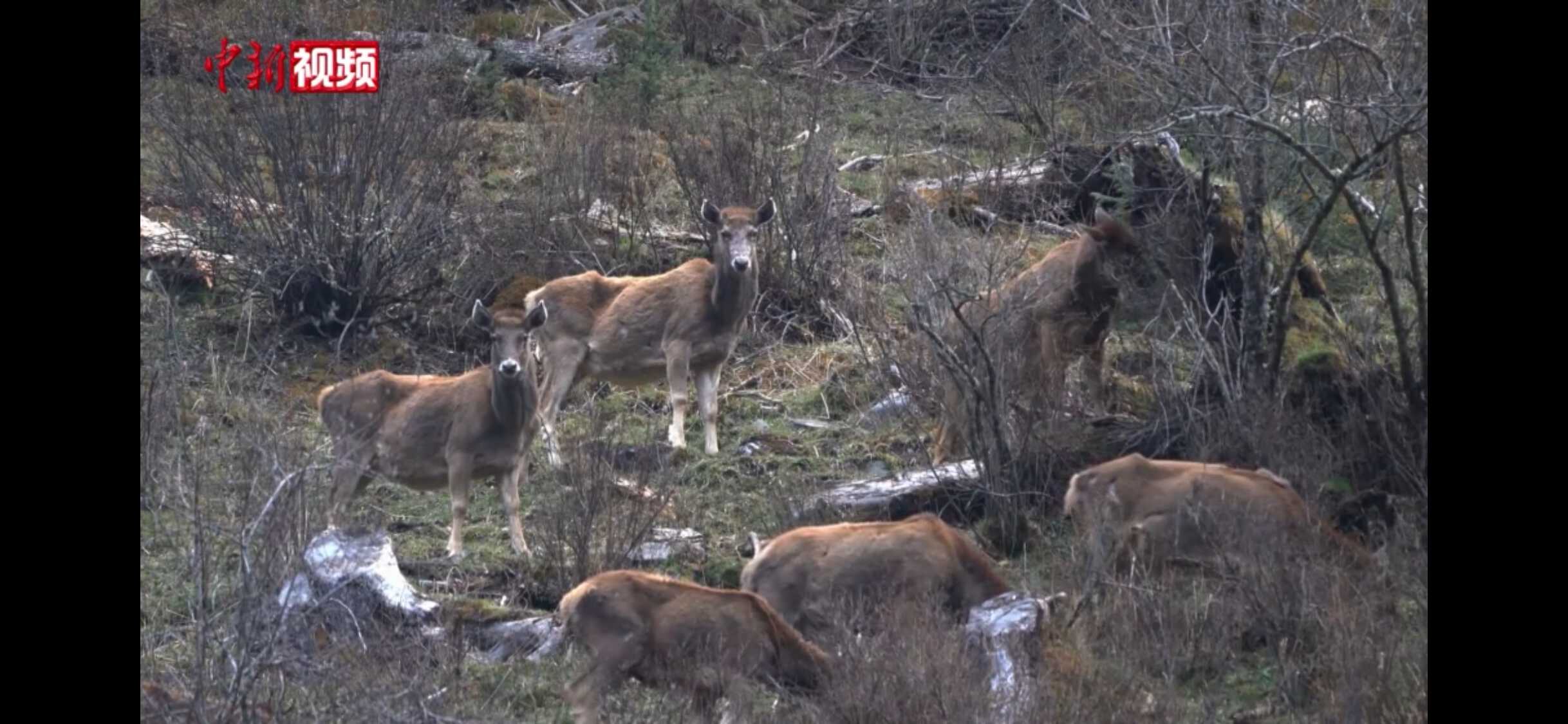 5月22日,在西藏昌都江达县邓柯乡巴龙村境内,记者拍摄到了白唇鹿活动画面。