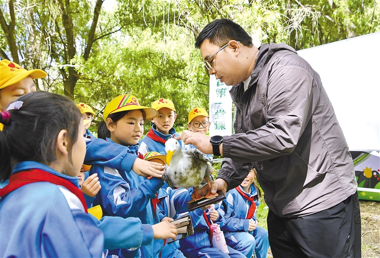 5月22日,是国际生物多样性日,拉鲁湿地国家级自然保护区管理局组织工作人员,为拉萨市城关区拉鲁小学的学生们带来一堂生动的保护生物多样性,共建和谐湿地科普自然教育课。