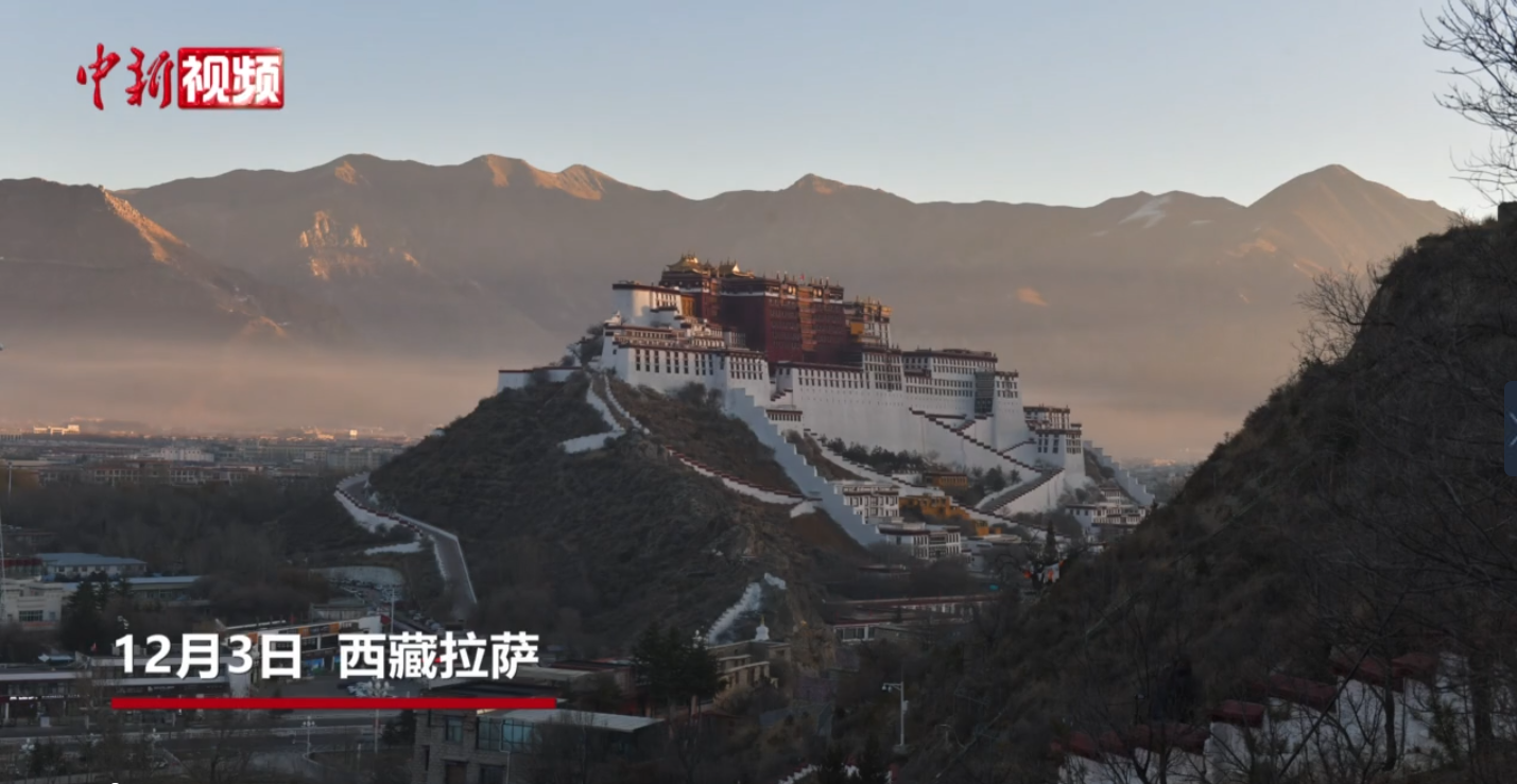 12月3日,西藏拉萨,布达拉宫迎来第一缕阳光。初冬拉萨,湛蓝天空与赭黄山峦衬托,布达拉宫雄伟壮丽,绘就一幅秀丽的自然画卷。