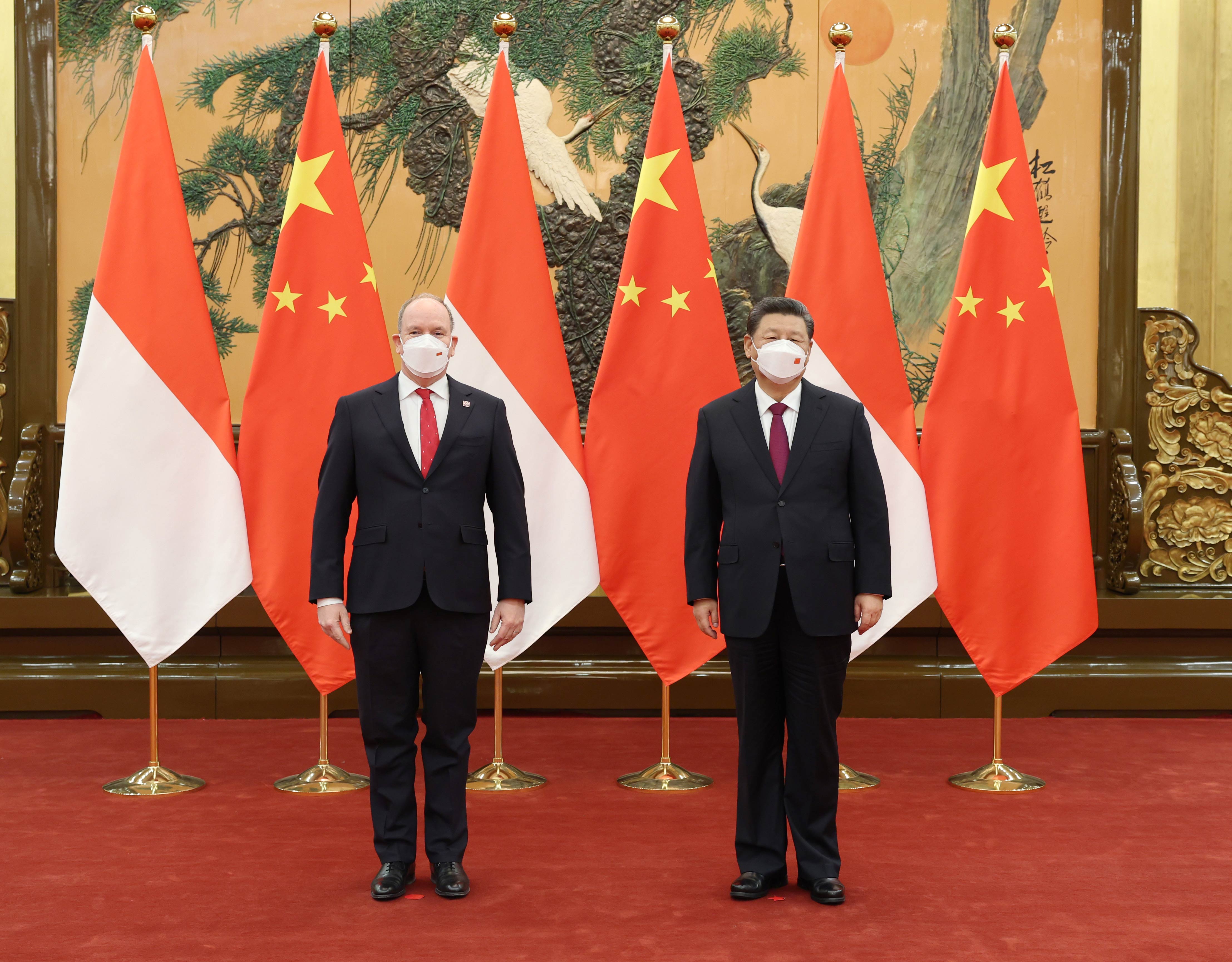 △2022年2月6日下午,国家主席习近平在北京人民大会堂会见摩纳哥元首阿尔贝二世亲王。