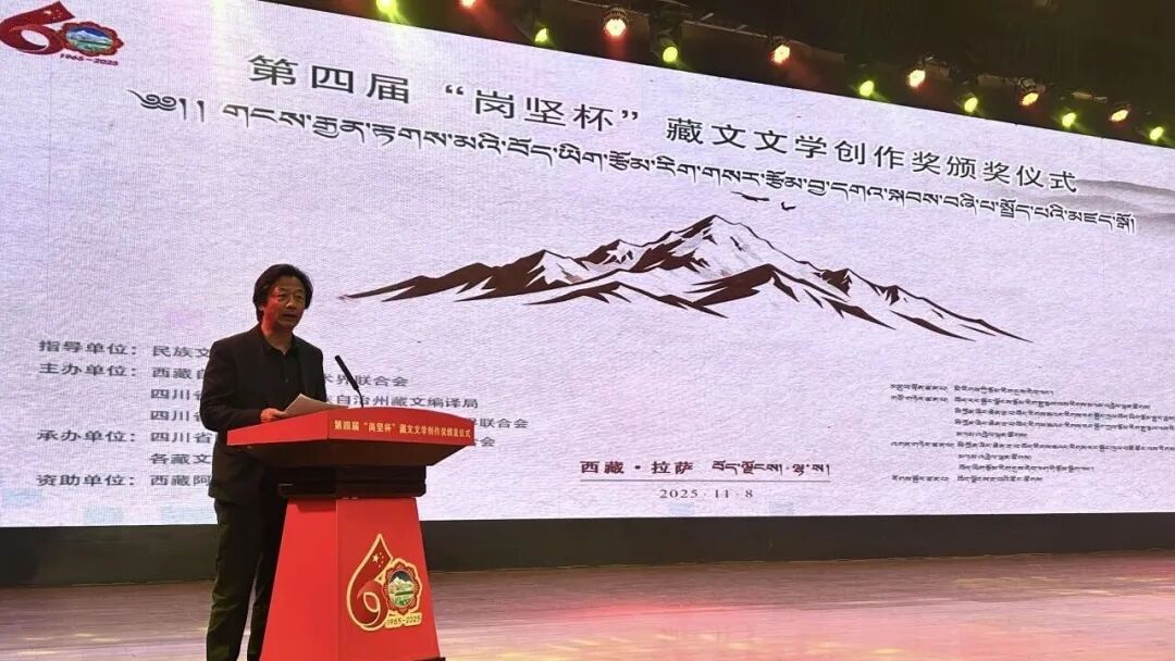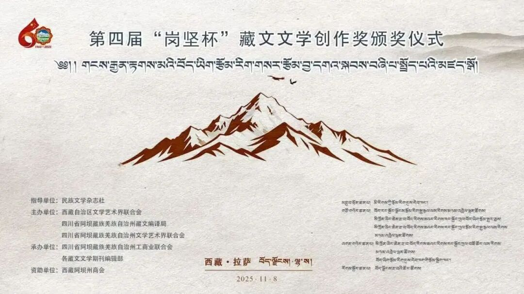 金秋高原风送爽,文脉赓续谱新章。11月8日,第四届“岗坚杯”藏文文学创作奖颁奖仪式在拉萨举办。恰逢西藏自治区成立60周年与“岗坚杯”设立30周年的双庆契机,这场承载着民族文化期许的盛典,以习近平新时代中国特色社会主义思想为指引,成为坚定文化自信、推动社会主义多民族文学繁荣的生动实践。来自北京、四川、青海、西藏等地的文学界代表、获奖作者、藏文文学期刊主编及读者代表齐聚一堂,共赴这场植根民族传统、彰显时代精神的文化之约,奏响新时代藏文文学守正创新的昂扬旋律。
