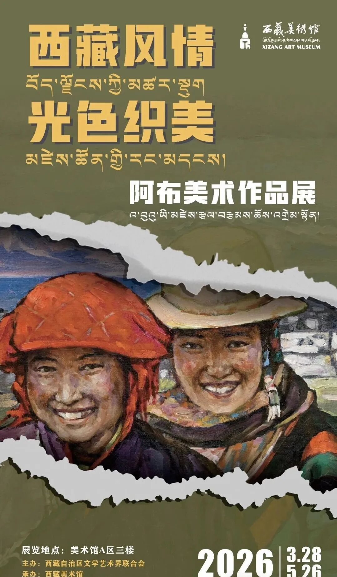 3月28日,“西藏风情·光色织美——阿布美术作品展”与“历史变迁中的人物画卷——西藏美术馆馆藏研究展”在美术馆A区一楼大厅与中央展厅同步开幕,共同诠释着西藏当代美术守正创新的蓬勃气象。
