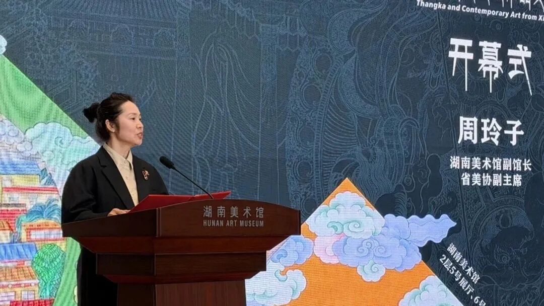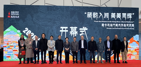 4月21日,“藏韵入湘 美美同辉”——唐卡与当代美术作品交流展开幕式在湖南美术馆一楼大厅隆重举行。本次展览由湖南省文学艺术界联合会、西藏自治区文联联合主办,湖南美术馆、西藏美术馆共同承办。湖南省文联党组书记、副主席乐奕宣布展览开幕,西藏自治区文联党组书记、副主席段胜前,湖南省文联副主席、湖南美术馆馆长、湖南省美术家协会副主席田绍登,西藏美术馆副馆长、西藏美术家协会副主席周明晖,先后致辞,来自湘藏两地的文化艺术界领导、专家学者、艺术家代表及各界观众百余人齐聚一堂,共同见证这一艺术盛会。