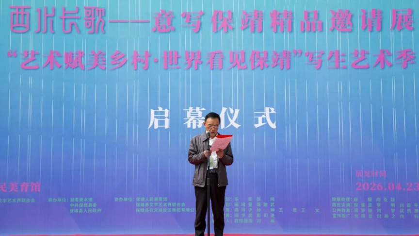 4月23日,段胜前一行前往湘西州保靖县,出席湖南美术馆首家县级分馆——保靖人民美育馆开馆暨“酉水长歌——意写保靖精品展”开幕活动。段胜前书记在致辞中表示,保靖是多民族共生共荣的家园,“酉水长歌”精品展既描摹了当地厚重的历史底蕴与斑斓的民族风情,也记录了新时代保靖儿女投身乡村振兴的奋斗英姿。保靖人民美育馆的落成,为基层群众打开了通往高雅艺术的大门,为文化赋能乡村振兴搭建了重要阵地。活动现场,在段胜前书记与湖南省文联相关领导的共同见证下,西藏美术馆与湖南美术馆保靖人民美育馆签署民族团结文艺协作友好单位协议,双方将在藏品互展、艺术研讨、人才交流等领域开启常态化深度合作。
