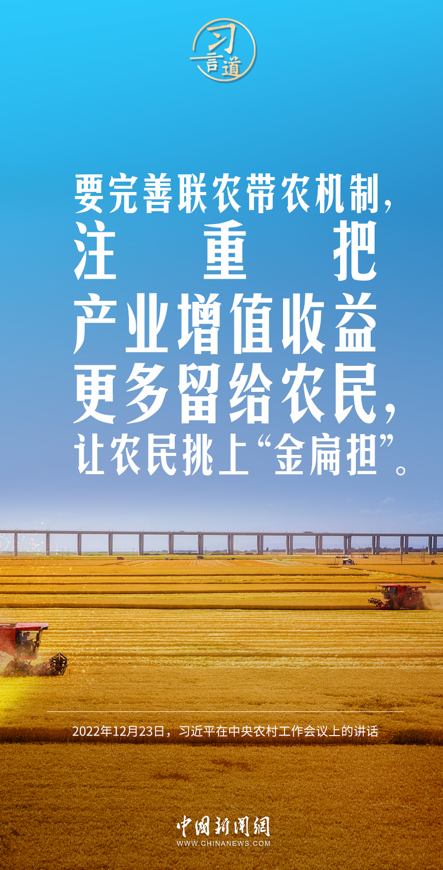 中国要富,农民必须富。习近平总书记高度重视农民增收工作,多次作出重要论述,强调要让农民挑上“金扁担”。