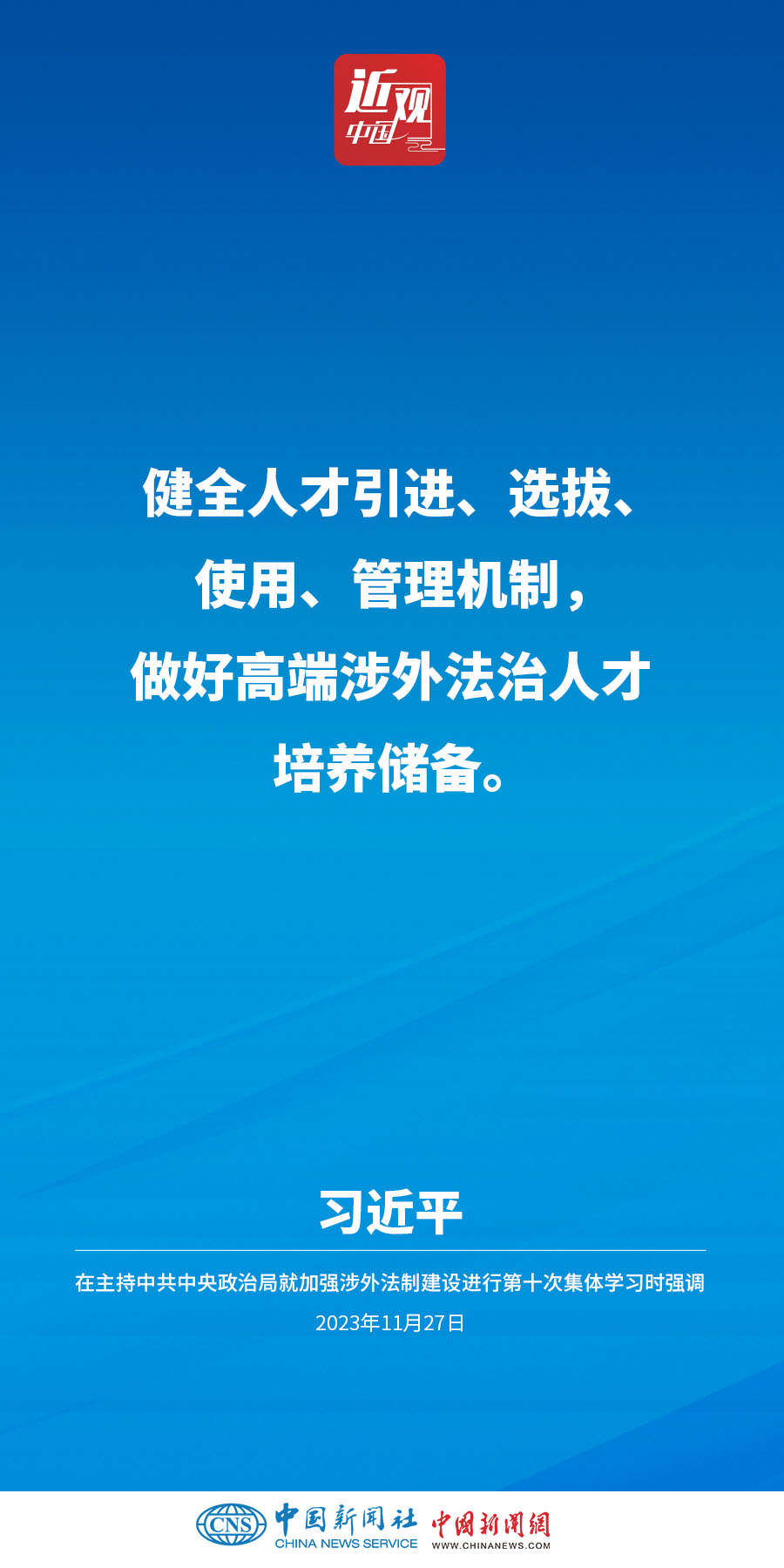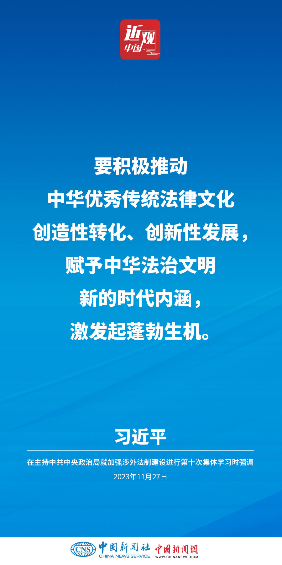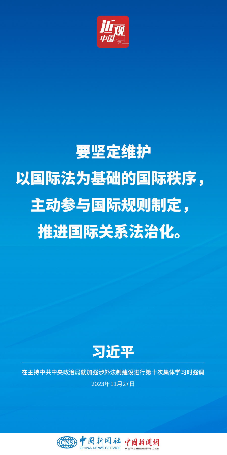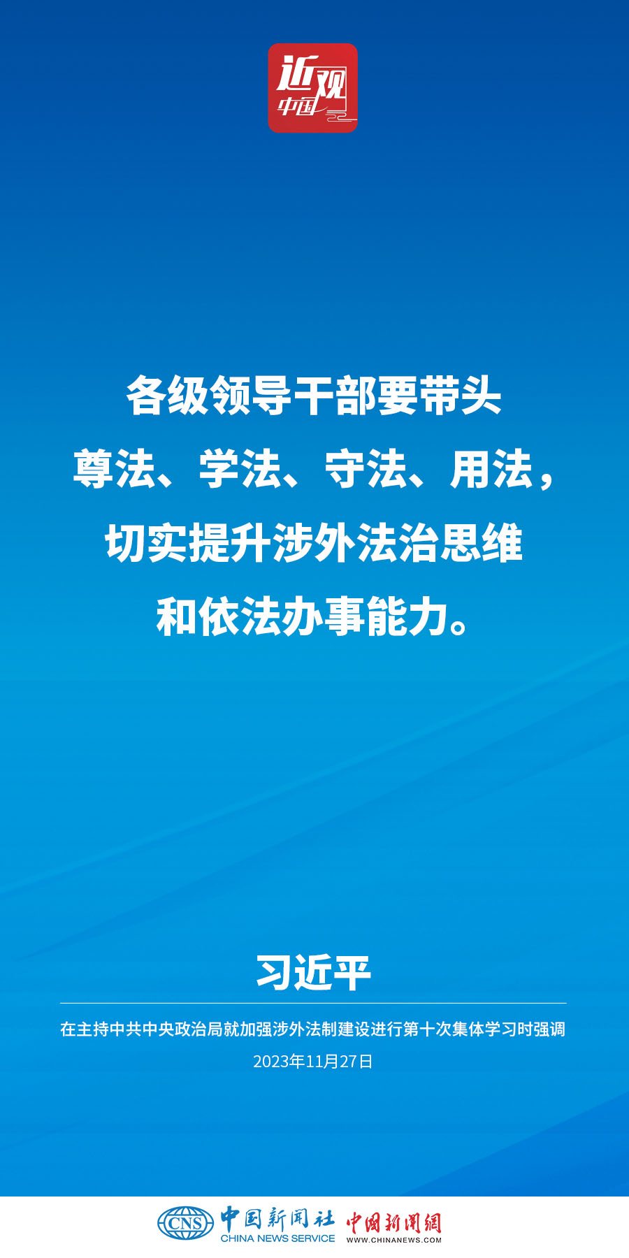 中共中央政治局11月27日下午就加强涉外法制建设进行第十次集体学习。中共中央总书记习近平在主持学习时强调,加强涉外法治建设既是以中国式现代化全面推进强国建设、民族复兴伟业的长远所需,也是推进高水平对外开放、应对外部风险挑战的当务之急。要从更好统筹国内国际两个大局、更好统筹发展和安全的高度,深刻认识做好涉外法治工作的重要性和紧迫性,建设同高质量发展、高水平开放要求相适应的涉外法治体系和能力,为中国式现代化行稳致远营造有利法治条件和外部环境。他指出——