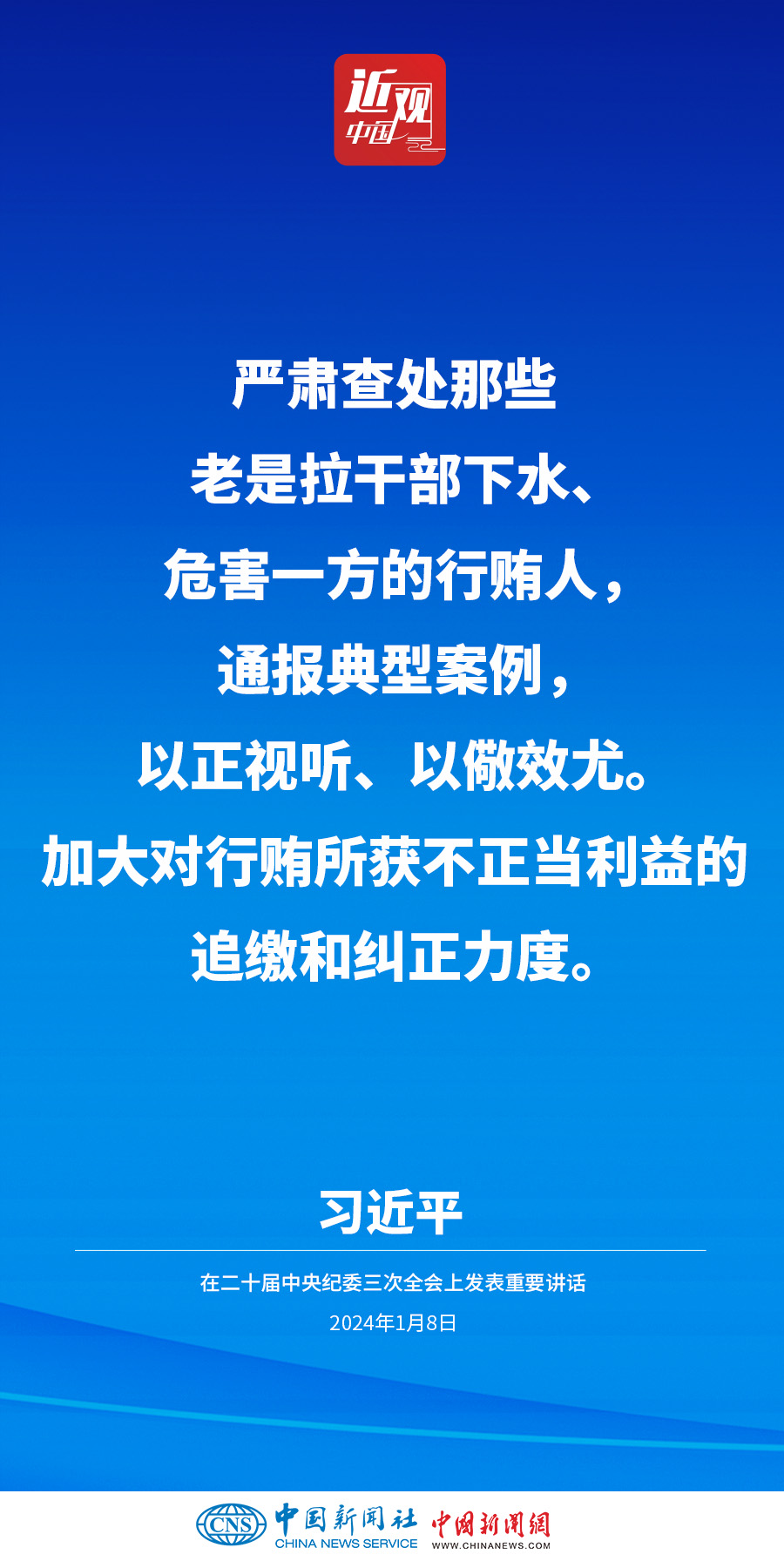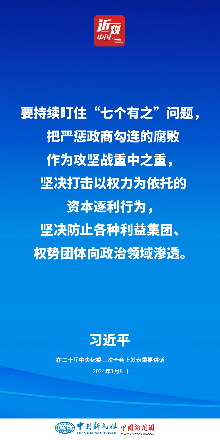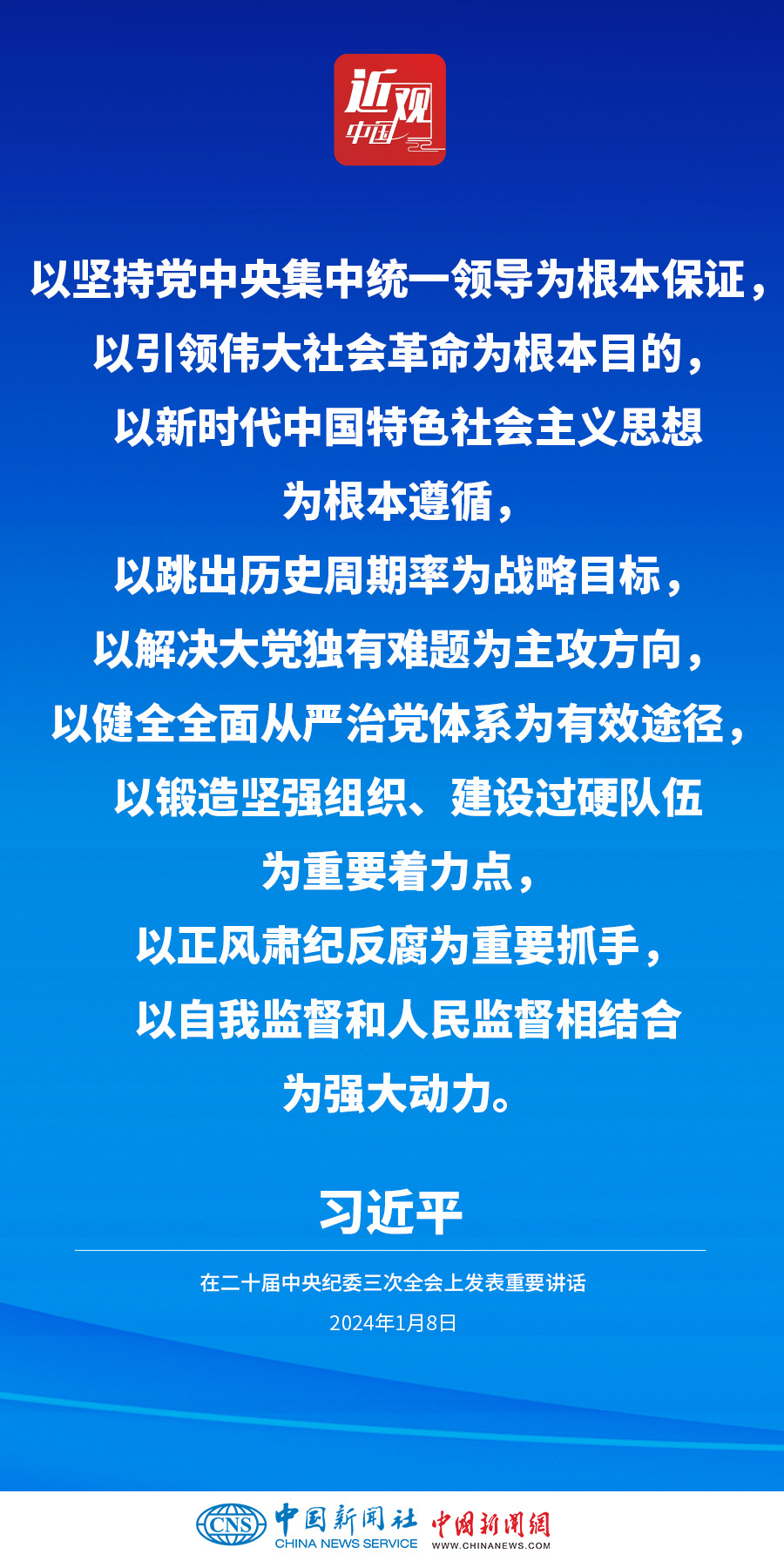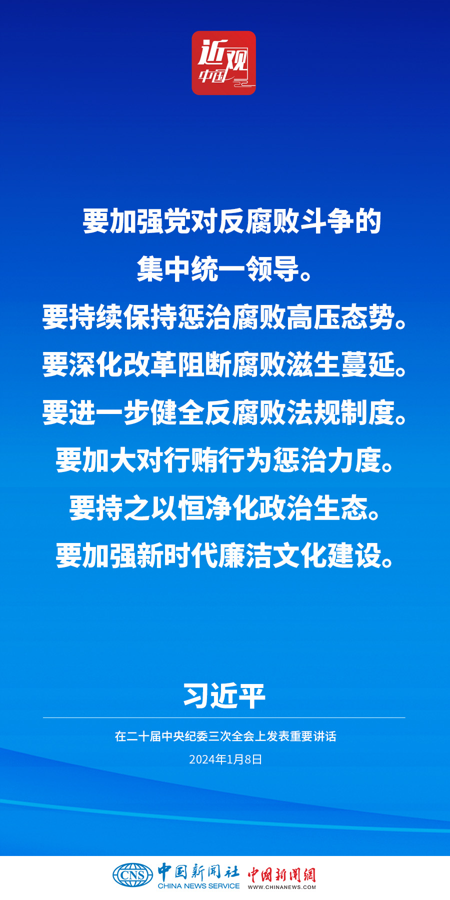 中共中央总书记、国家主席、中央军委主席习近平8日上午在中国共产党第二十届中央纪律检查委员会第三次全体会议上发表重要讲话。他强调——