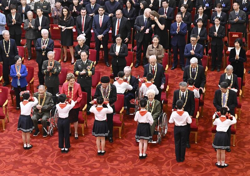 右手高举过头、敬少先队队礼……十几天前,国家勋章和国家荣誉称号颁授现场,少先队员向功勋模范人物献上鲜花,敬礼致意。跨越几代人的对视,连接光荣的历史与充满希望的未来。