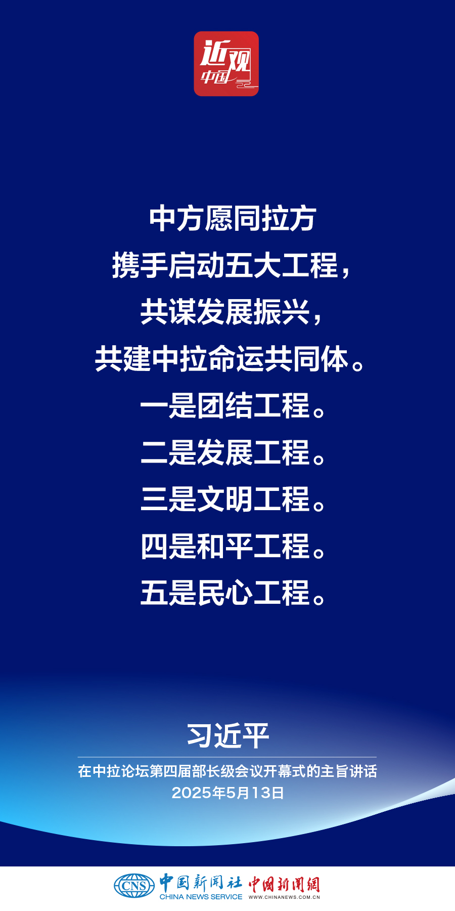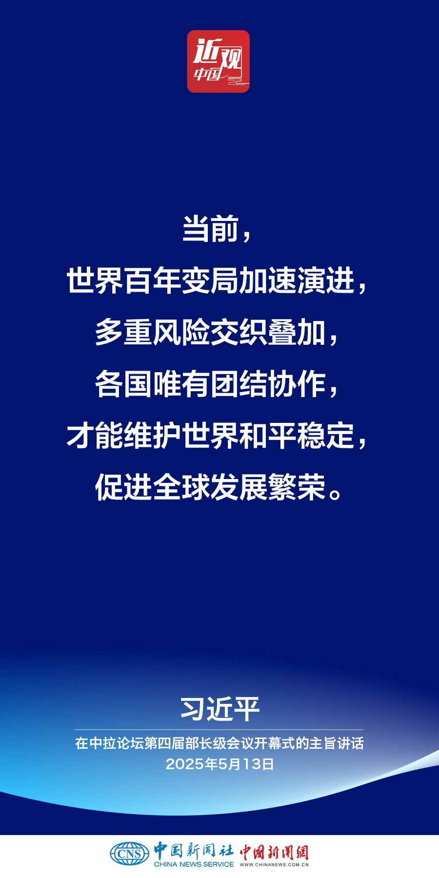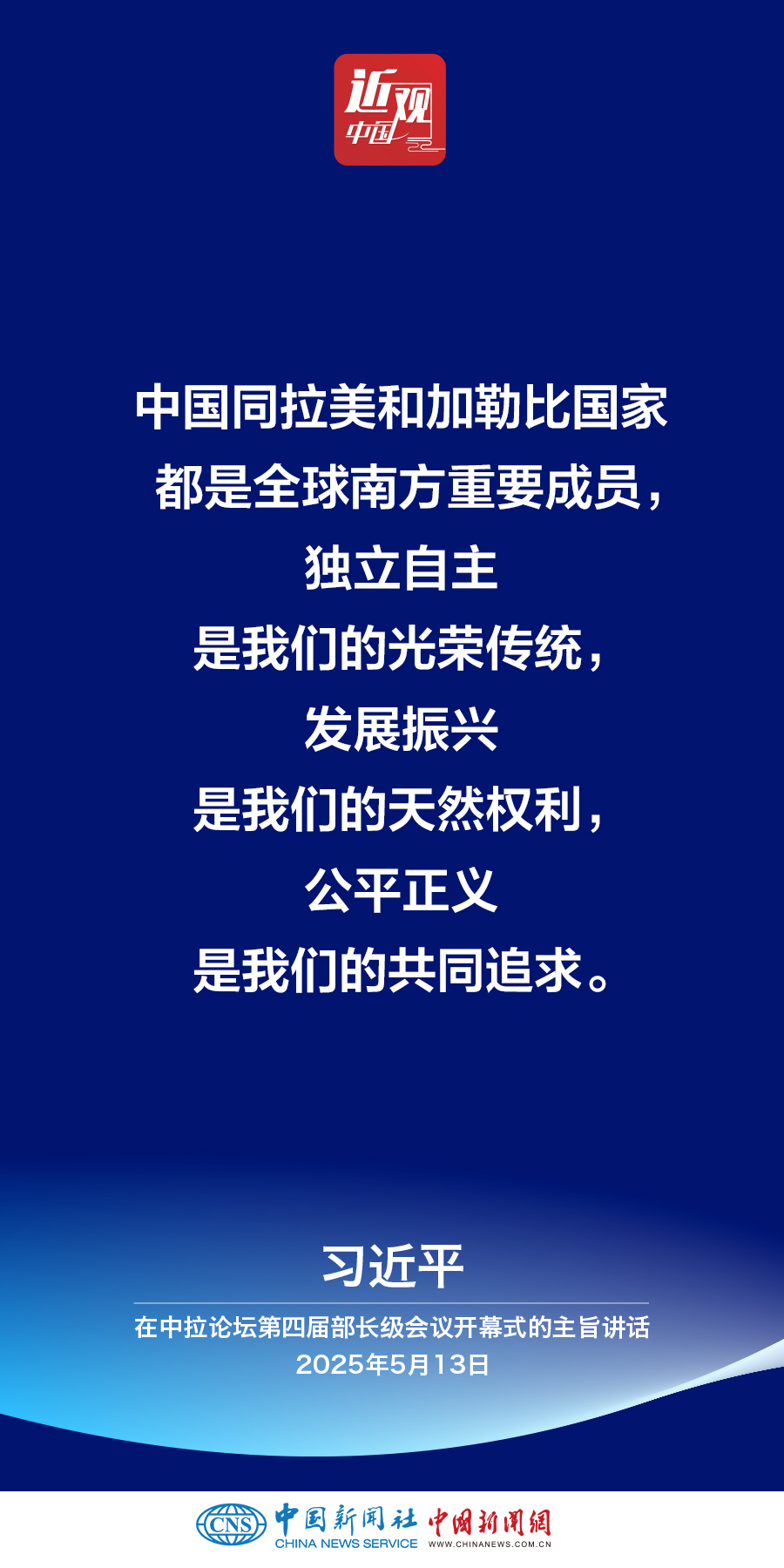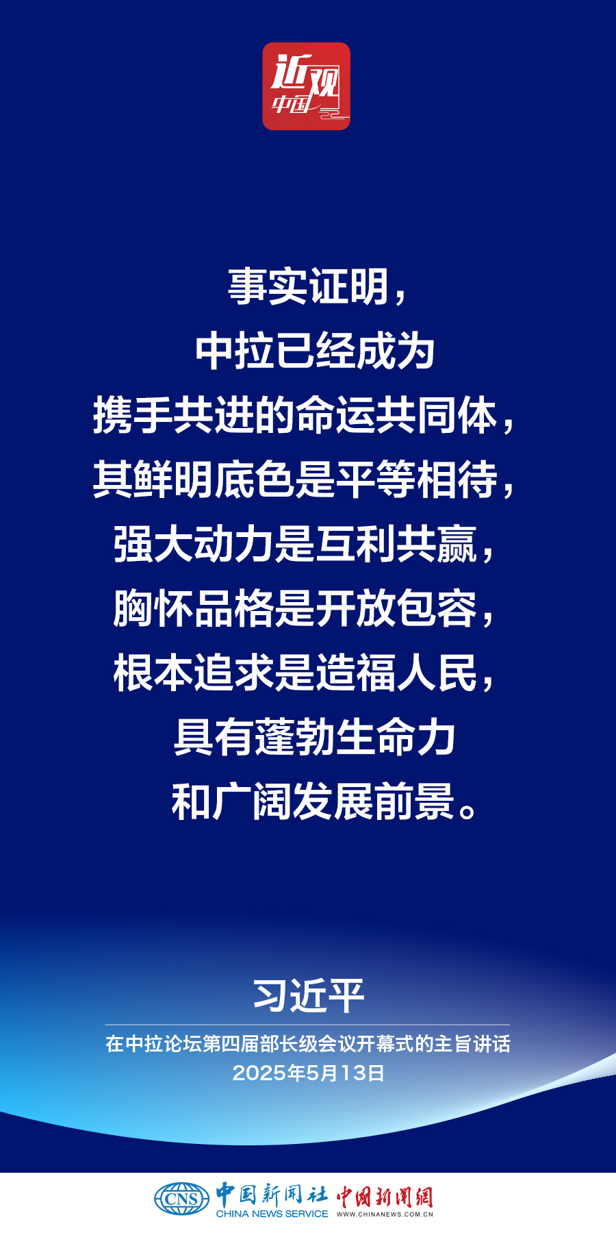 5月13日上午,国家主席习近平在北京出席中国-拉美和加勒比国家共同体论坛第四届部长级会议开幕式并发表重要讲话。他说——
