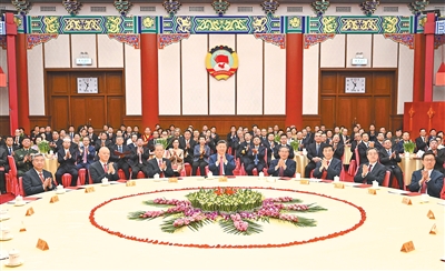 茶话会由中共中央政治局常委、全国政协主席王沪宁主持。他指出,要认真学习贯彻习近平总书记重要讲话精神,毫不动摇坚持中国共产党的全面领导,牢牢把握人民政协性质定位,聚焦党和国家中心任务履职尽责,充分发挥人民政协作为专门协商机构作用,同心同德、群策群力,为“十五五”开好局、起好步广泛凝心聚力,为基本实现社会主义现代化而不懈奋斗。