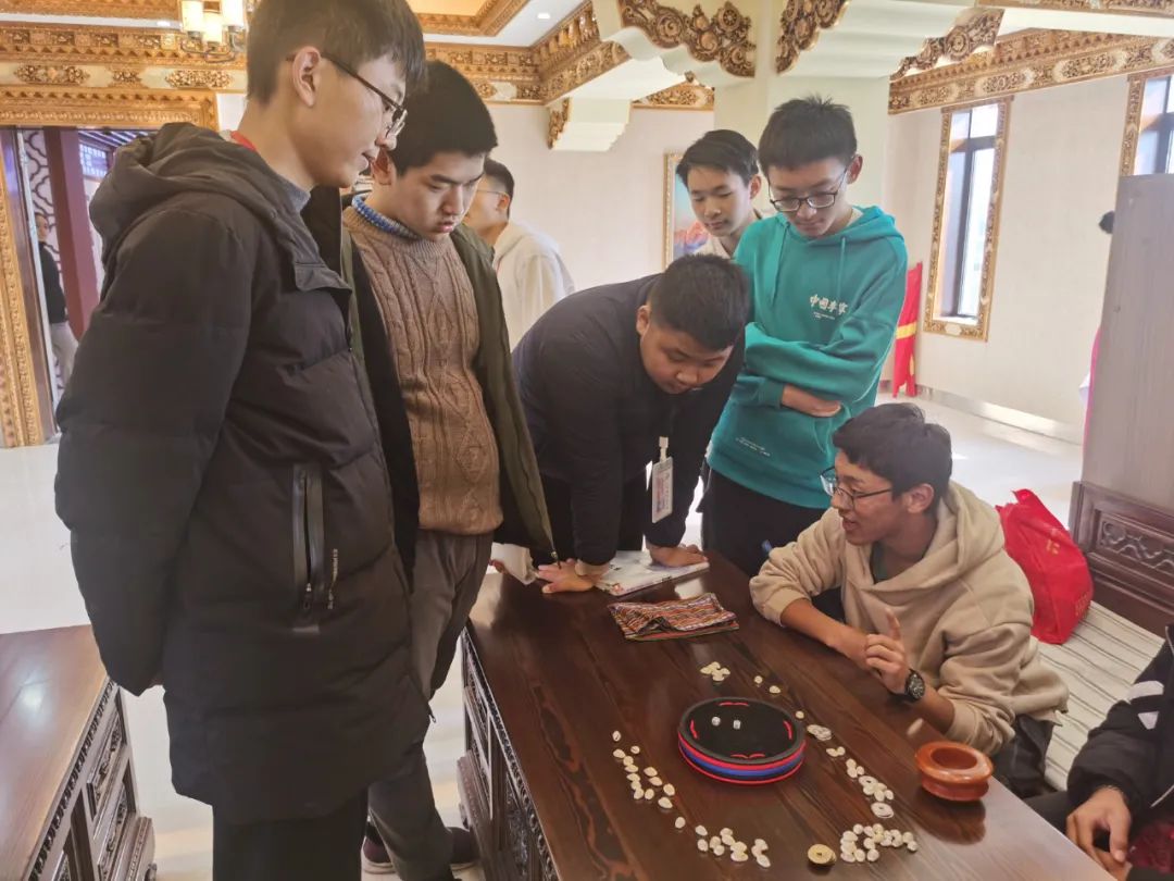 ▲南通中学学生在民族文化展览馆体验藏棋。 南通中学供图