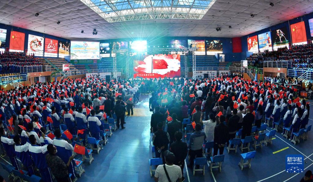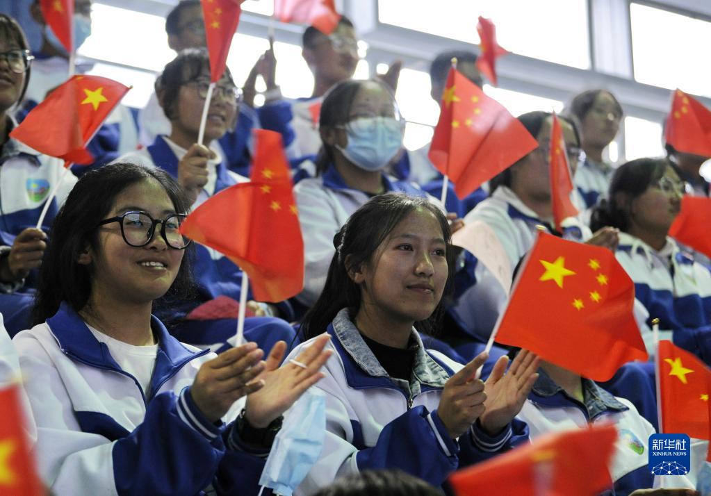 山南市第二高级中学学生在体育馆观看中华诗文朗诵会(6月3日摄)。新华社记者 刘洲鹏 摄