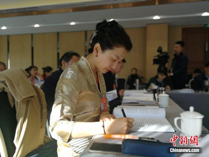 图为边巴拉姆在全国两会上参加政协小组会。受访者供图