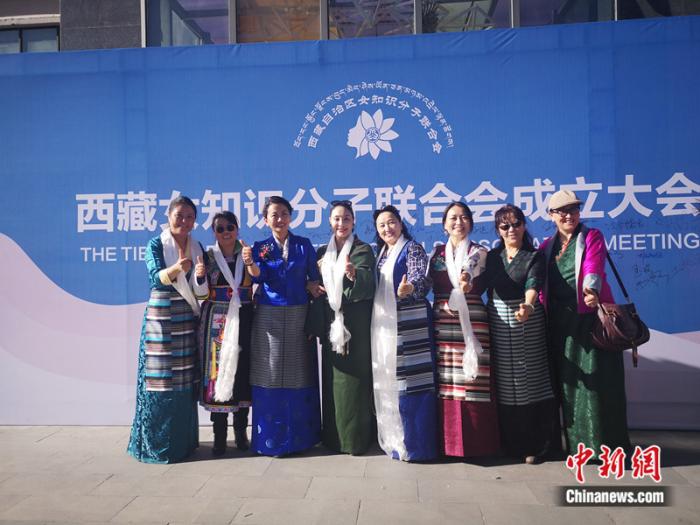 2019年,边巴拉姆(左三)参与成立西藏自治区女知识分子联合会,并担任首任会长。受访者供图