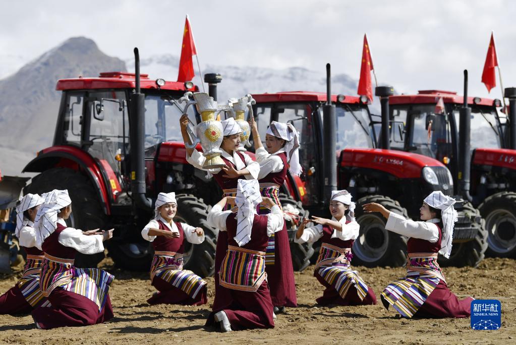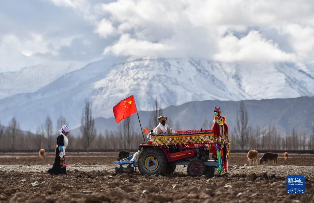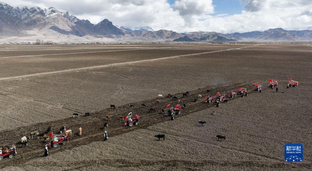 西藏拉萨市林周县强嘎村的春耕仪式现场(3月16日摄)。新华社记者 张汝锋 摄
