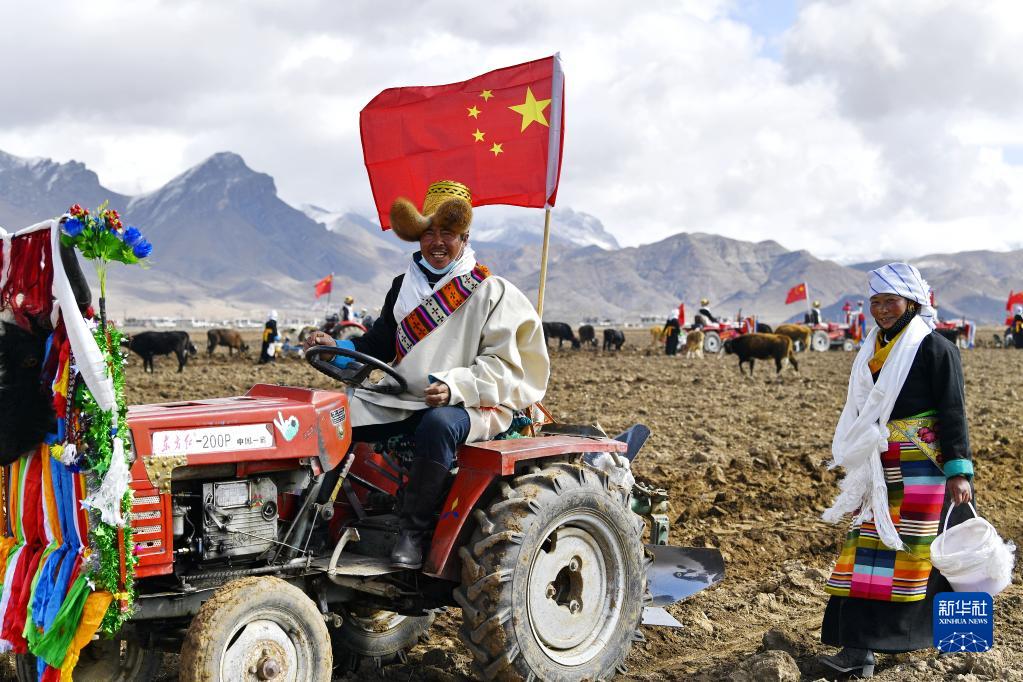 16日,西藏多地举行传统的春耕仪式,开犁播种。清晨,56岁的扎西次仁早早来到一处宽阔的农田上,同村民一起参与一年一度的春耕仪式。