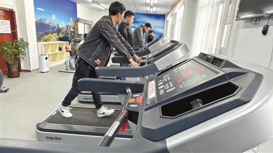 图为在拉萨市城关区综合文化服务中心内健身的市民群众。记者 格桑伦珠 卢文静 摄