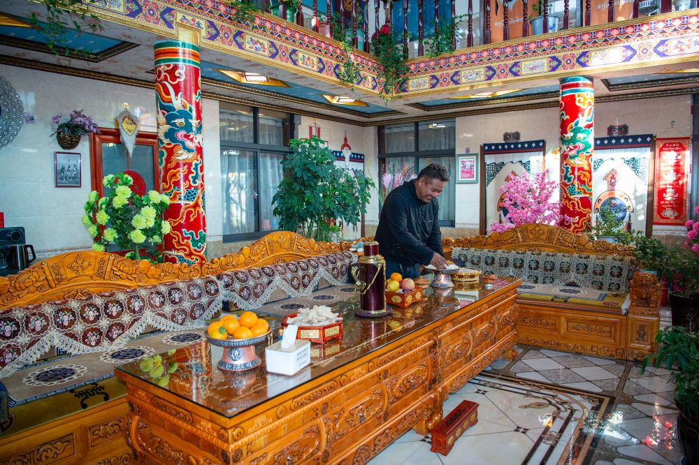 6月24日,扎西曲登社区村民在家准备迎接游客。新华网 旦增努布 摄