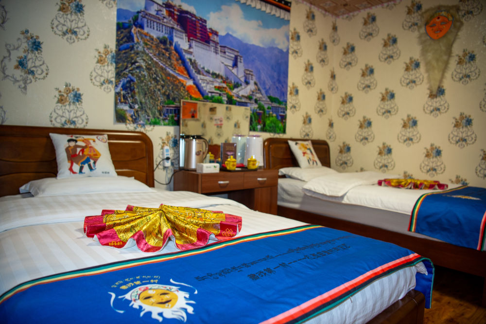 图为扎西曲登社区一家民宿的藏戏主题客房(6月24日摄)。新华网 旦增努布 摄